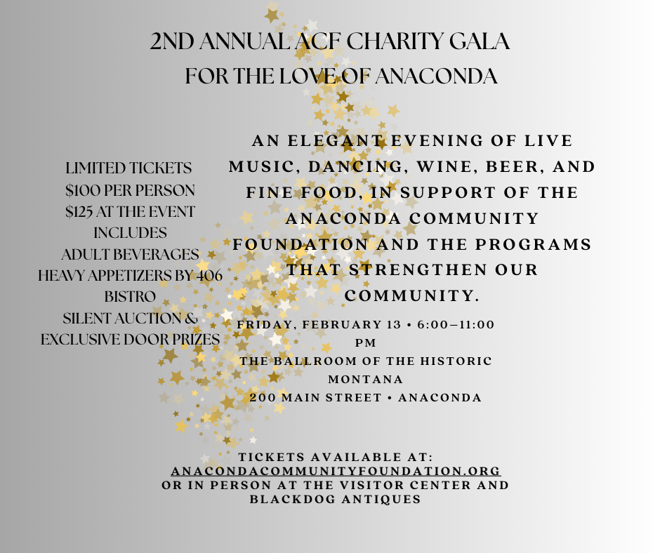 Attend an elegant evening in support of the Anconda Community Foundation.