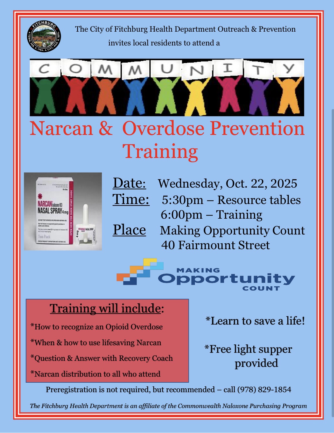 **The Fitchburg Health Department is an affiliate of the Commonwealth Naloxone Purchasing Program**