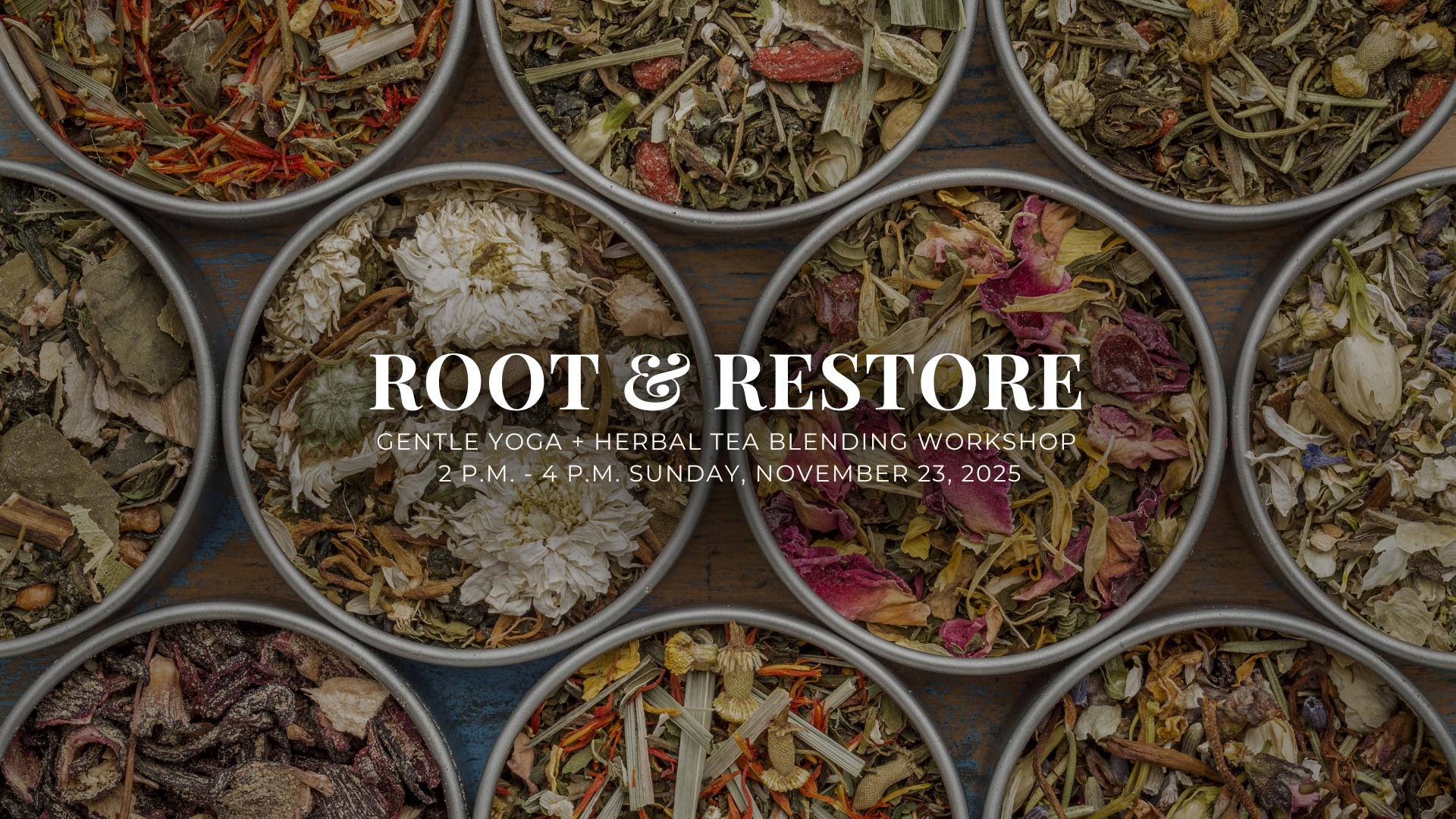 A cozy afternoon of gentle yoga, herbal wisdom, and mindful making. We’ll begin with a slow, restorative practice under soft lights and winter greens. Then Alexis, herbalist and tea alchemist, guides us through plants that support rest, immunity, and balance in the colder season. We will then craft a personalized tea blend to take home, your own mix of herbs to balance and nourish through the holidays ahead.
